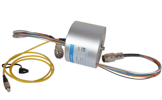 電滑環(huán),在所有滑環(huán)系列中使用最廣泛,也稱電刷、碳刷、集電環(huán)、集流環(huán)、匯流環(huán)、旋通、旋轉(zhuǎn)電氣關(guān)節(jié),專用于在無限制連續(xù)旋轉(zhuǎn)時,傳輸功率電源、信號電源。定子與轉(zhuǎn)子部分分別引出導(dǎo)線連接固定結(jié)構(gòu)與旋轉(zhuǎn)結(jié)構(gòu)的電源與終端電器,并隨之旋轉(zhuǎn)。根據(jù)其整體結(jié)構(gòu)的不同,分為實圓滑環(huán)(在旋轉(zhuǎn)體上挖一個孔,安裝滑環(huán)),(如圖),空圓滑環(huán)(將滑環(huán)安裝在旋轉(zhuǎn)軸上)(如圖),以及分離滑環(huán)、扁盤滑環(huán)、水銀滑環(huán)、特型滑環(huán)等等。